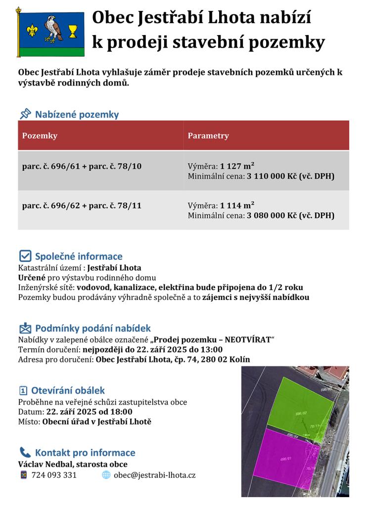 Více informací na úřední desce obce , nebo u starosty obce.